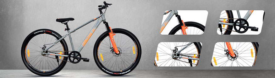 It is engineered for toughness, and like a mighty rock, this ATB zooms across gravelly roads. The Granite X40 comes in elegant colour combinations such as Silver Red and Black Orange colour variants. The bicycle is built in a frame with hi-tensile steel and has a fork of V91 suspension 80mm travel that offers the comfort of zero shock suspension. The disc brakes in the bike provide a safe ride to its rider and are handy when it comes to controlling the speed. The Granite ATB also comes with hi-traction nylon 27.5 x 2.1/2.4 wide tires; it is essential to have thick and fat tires for off-roading adventures since thick tires offer better grip and friction with the roads. The bike also possesses double-wall rust-free alloy rims and water transfer decals that make this bike a beast ready to be tackled.